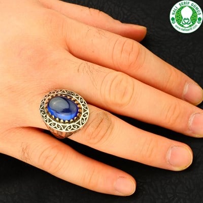 Lal Safir Mavi Taşlı 925 Ayar Gümüş Erkek Yüzüğü