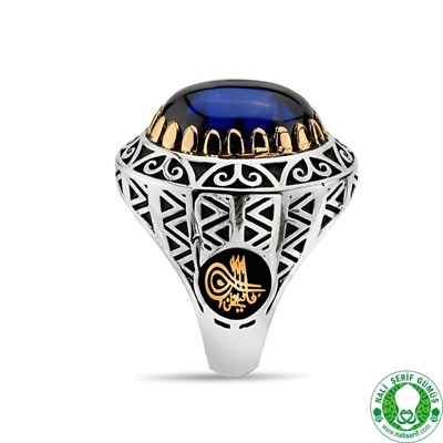 Lal Safir Mavi Taşlı 925 Ayar Gümüş Erkek Yüzüğü (NS1362)